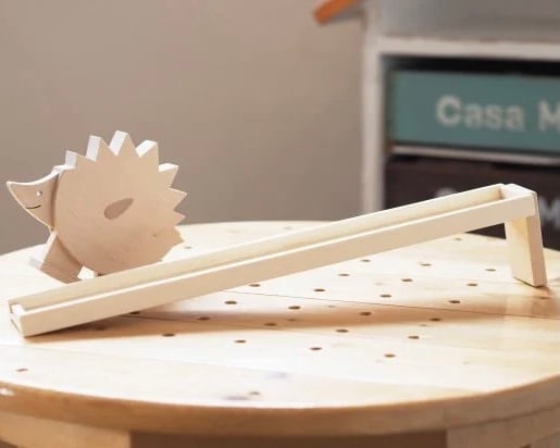 坂道にはりねずみを乗せると、コトンコトンと優しい音を立てながらゆっくり坂道を下ります♪ 木のぶつかる音とゆっくりした動きがとても愛らしく、何度もやってみたくなるおもちゃです。 おもちゃとしてだけでなく、北欧風インテリア雑貨としても人気です。